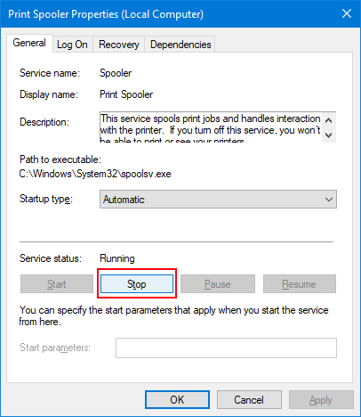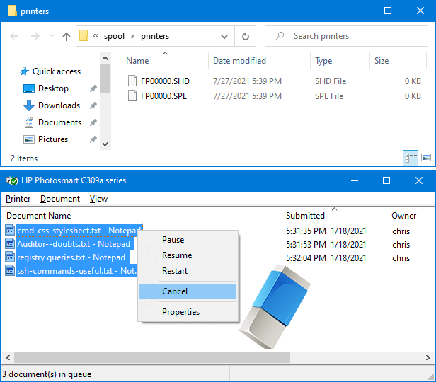 اسپولر چاپ را به صورت دستی پاک و تنظیم مجدد کنید